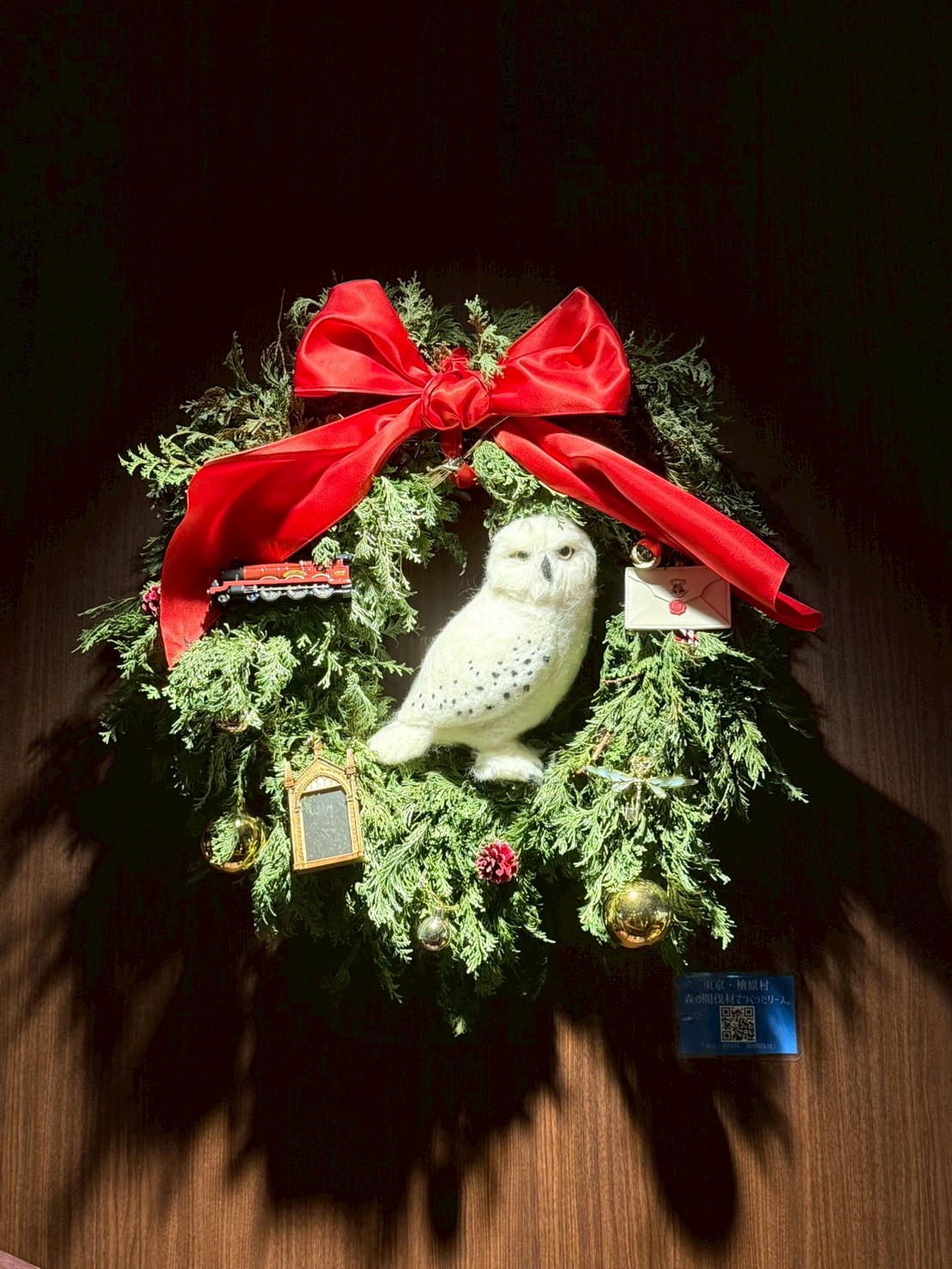 2025.12.01|ハリーポッターマホウドコロプラザ店にて、檜原村の間伐材でつくるクリスマスリースワークショップが開催されました。